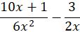 Sprowadź ułamki do wspólnego mianownika i doprowadź do najprostszej postaci. Podaj dziedzinę, wiedząc, że mianownik musi być różny od zera.
