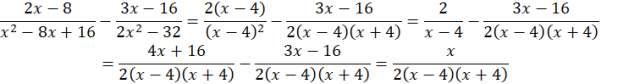 Sprowadź ułamki do wspólnego mianownika i doprowadź do najprostszej postaci. Podaj dziedzinę, wiedząc, że mianownik musi być różny od zera.