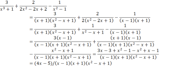 Sprowadź ułamki do wspólnego mianownika i na jedną kreskę ułamkową. Maksymalnie uprość licznik. Wyznacz dziedzinę, wiedząc, że mianownik musi być różny od zera.