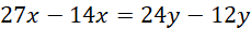 Musisz przekształcić równanie tak, by otrzymać proporcję pomiędzy niewiadomymi x i y a następnie porównać otrzymaną proporcję z zadaną.