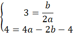Stwórz układ równań. Pierwsze równanie stwórz, wiedząc, że wzór na oś symetrii paraboli to
