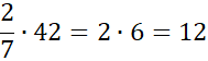 Obliczając ułamek z jakiejś liczby, należy pomnożyć go przez tę liczbę. Pamiętaj o upraszczaniu. Tutaj możesz skrócić 7 i 42: