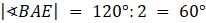 Trójkąt BAE ma miary kątów równe 60°, 60°, 90°