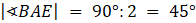 Trójkąt BAE ma miary kątów równe 45°, 45°, 90°