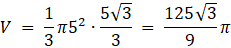 Dany jest stożek o przedstawionych wymiarach. Znajdź jego pole powierzchni bocznej i objętość.