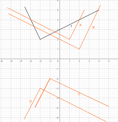 W tym zadaniu należy dopasować wykresy powstałe w wyniku przekształcenia wykresu funkcji f do wzorów je opisujących.