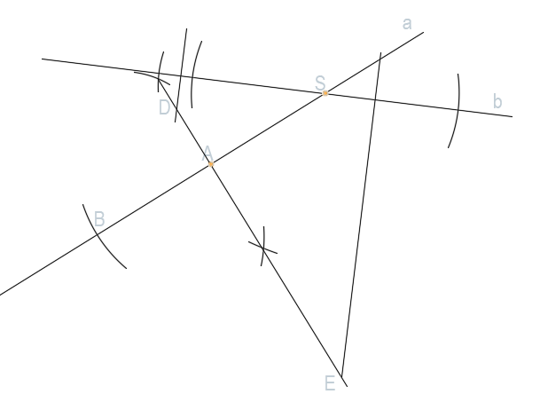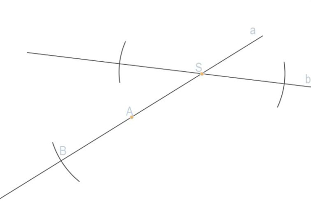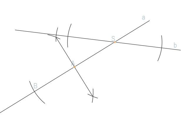Narysuj łuki o promieniu długości AS i środku w punkcie S.
