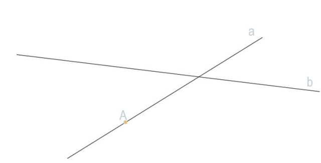 Narysuj dwie przecinające się proste i punkt na jednej z nich: