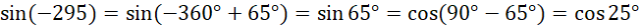W tym zadaniu musisz powiedzieć, dla jakich kątów większych bądź równych –360°, ale mniejszych lub równych 360° y funkcji y = cos α jest równy tyle samo, co sin (–295°).