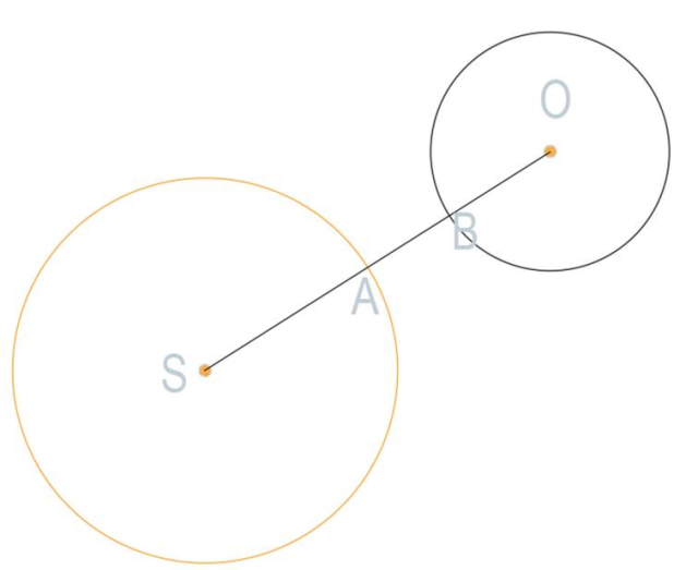 Narysuj dwa okręgi i odcinek łączący ich środki: