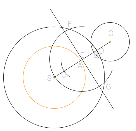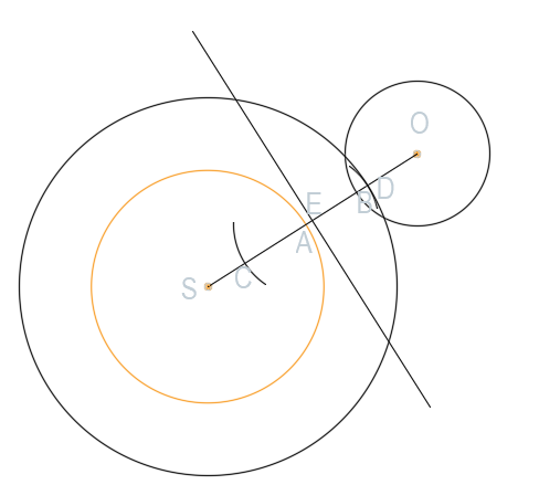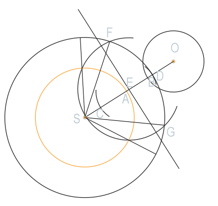 Narysuj okrąg o promieniu SD o środku w punkcie S