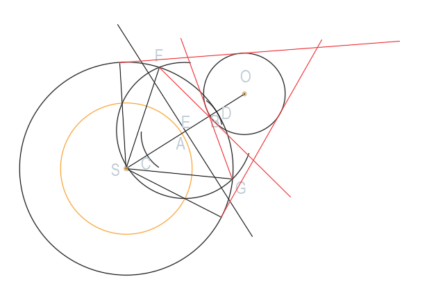 Narysuj proste, które są równocześnie styczne do dwóch okręgów rozłącznych o różnych promieniach.