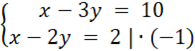 Tworzymy układ równań oparty o warunki z treści zadania. Rozwiązujemy je metodą przeciwnych współczynników: