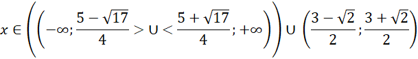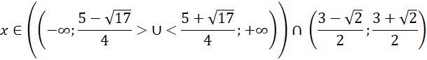 , dla którego co najmniej jedna nierówność jest spełniona to musimy wziąć sumę tych przedziałów.