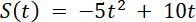 Rzucono kamień z prędkością początkową 10 m/s pionowo do góry. Wysokość S [m], jaką osiągnie kamień po t sekundach, określona jest w przybliżeniu funkcją