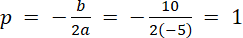 ma ujemny współczynnik kierunkowy, więc ramiona paraboli będą w dół, a wierzchołek będzie wartością maksymalną.