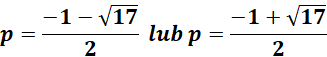 Podstaw wartości do wzoru na pole, następnie za pomocą znanych Ci wzorów wylicz wartość p.