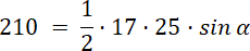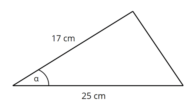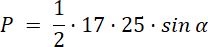 Wyznacz sinus kąta między ramionami trójkąta, korzystając z wzoru na pole trójkąta, zależnego od dwóch długości boków trójkąta i sinusa kąta między tymi bokami.