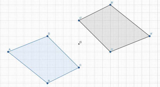 W tym zadaniu musisz znaleźć obraz danej figury w symetrii środkowej względem punktu O.