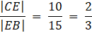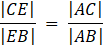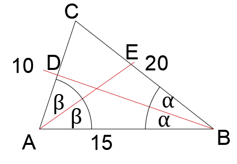 Największy kąt to CAB. Ponieważ trójkąty mają wspólną wysokość to, stosunek pól trójkątów powstałych przez poprowadzenie dwusiecznej AE je równy stosunkowi długości ich podstaw: