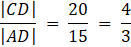 Najmniejszy kąt to ABC. Ponieważ trójkąty mają wspólną wysokość to, stosunek pól trójkątów powstałych przez poprowadzenie dwusiecznej AD je równy stosunkowi długości ich podstaw: