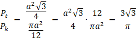Znajdź stosunki pól trójkąta równobocznego i koła w niego wpisanego.