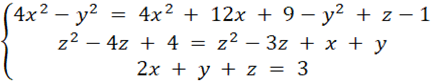 Rozwiązujemy potrójny układ równań metodą podstawiania: