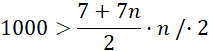 2000 > (7 + 7n)n /-2000