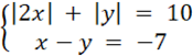 Aby rozwiązać ten układ równań musimy rozważyć cztery przypadki, kiedy pod wartością bezwzględną danych wyrażeń znajduje się liczba dodatnia i ujemna. Gdy wyrażenie jest ujemne to po opuszczeniu wartości bezwzględnej zmieniamy jego znak. Układy równań rozwiązujemy metodą podstawiania i sprawdzamy, czy dane rozwiązania spełniają warunek dziedziny.