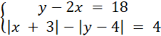 Aby rozwiązać ten układ równań musimy rozważyć cztery przypadki, kiedy pod wartością bezwzględną danych wyrażeń znajduje się liczba dodatnia i ujemna. Gdy wyrażenie jest ujemne to po opuszczeniu wartości bezwzględnej zmieniamy jego znak. Układy równań rozwiązujemy metodą podstawiania i sprawdzamy, czy dane rozwiązania spełniają warunek dziedziny.