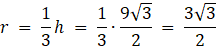 Dany jest trójkąt równoboczny o boku długości 9. Jakie jest pole pierścienia zbudowanego na okręgach wpisanym i opisanym na tym trójkącie?