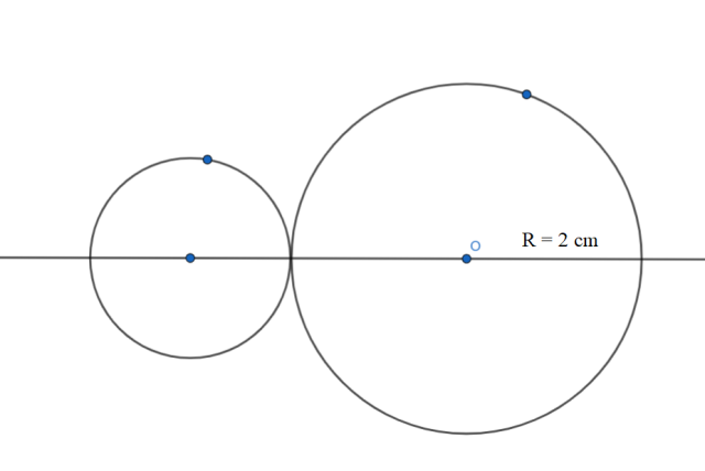 Narysuj najpierw okrąg o promieniu 2 cm, a następnie prostą przechodzącą przez jego środek. Okręgi są styczne, gdy mają jeden punkt wspólny. Odmierz dowolny promień drugiego okręgu i narysuj go na prostej w taki sposób, by stykał się z pierwszym okręgiem w jednym punkcie.