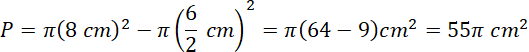 Pole pierścienia oblicz jako różnicę większego i mniejszego koła: