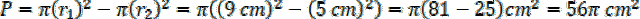 Znając promienie, możesz obliczyć pole pierścienia jako różnicę pól większego i mniejszego koła.