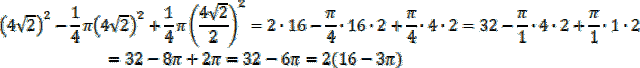 Od pola całego kwadratu o przekątnej 8 musisz odjąć pole