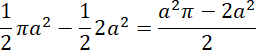 Aby wyznaczyć wzór na pole zamalowanej figury od pola polowy koła o promieniu a, musisz odjąć pole trójkąta o podstawie 2a i wysokości a: