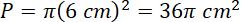 Koło o średnicy 12 cm ma promień równy 6 cm. Podstaw do wzoru na pole: