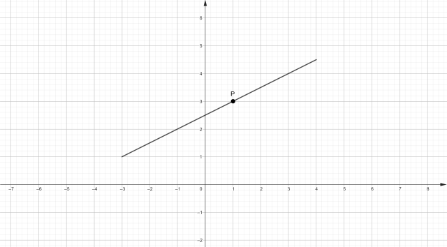 Narysuj wykres funkcji, która określona jest na przedziale ⟨-3; 4⟩, biorąc pod uwagę, że do funkcji należy punkt P(1,3) oraz funkcja ta jest rosnąca.