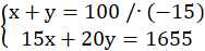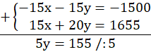 Następnie układ rozwiąż metodą przeciwnych współczynników, w tym celu pomnóż pierwsze równanie przez -15 i dodaj do siebie stronami równania.