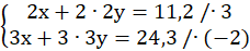 Następnie układ rozwiąż metodą przeciwnych współczynników, w tym celu pomnóż pierwsze równanie przez 3, a drugie przez -2 i dodaj do siebie stronami równania.