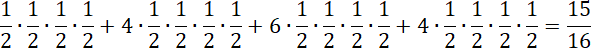 B „wyrzucenie maksymalnie trzech reszek w czterech rzutach monetą” to znaczy wyrzucenie zera, jednej, dwóch lub trzech reszek.