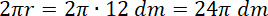 Średnica koła ma 24 dm. Oblicz obwód koła o promieniu 12 dm: