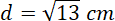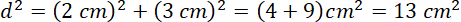 Trójkąt prostokątny o przyprostokątnych 2 cm i 3 cm przekształcono przez symetrię środkową względem punktu, który jest środkiem przeciwprostokątnej. Po przekształceniu powstał prostokąt o bokach 2 cm i 3 cm. Oblicz długość przekątnej, korzystając z twierdzenia Pitagorasa: