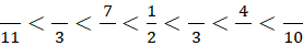 W tym zadaniu musisz uzupełnić luki tak, aby ułamki były uporządkowane rosnąco: