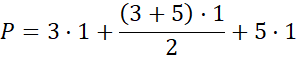 Zauważ, że drugi składnik przedstawia pole trapezu o podstawach długości 3 oraz 5 i wysokości równej 1. Taką figurę możemy umieścić tylko w jednym miejscu – na środku wielokąta. Prostokąt o wymiarach 3 x 1 znajduje się nad trapezem, czyli z wielokąta pozostał prostokąt o wymiarach 5 x 1.