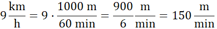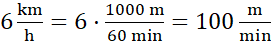 W tym zadaniu musisz zamienić kilometry na godzinę na metry na minutę lub metry na sekundę.