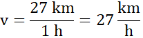 Zauważ, że tramwaj w 4 minuty pokonuje 1800 metrów, a więc w czasie 15 razy dłuższym, w godzinę, przejedzie 15 razy więcej metrów. Znasz pokonany dystans (27 km) oraz czas na niego potrzebny (1 h), zapisz więc prędkość pojazdu – jest to iloraz drogi i czasu.
