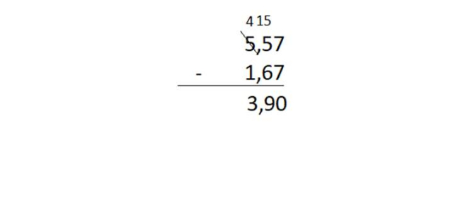 5,57 – 1,67 = 3,90