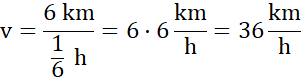 Pamiętaj, prędkość średnia to iloraz drogi i czasu. Możesz przed wykonaniem dzielenia zapisać 10 minut jako część godziny albo zauważyć, że skoro pojazd pokonał w 10 minut 6 km, to w czasie 6 razy dłuższym, czyli w 60 min (1 godzinę) przejedzie 36 km, co daje prędkość równą 36