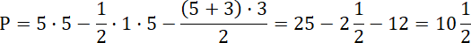 W tym zadaniu musisz zapisać pole podanego na ilustracji wielokąta jako suma lub różnica innych figur, a następnie podać to pole.